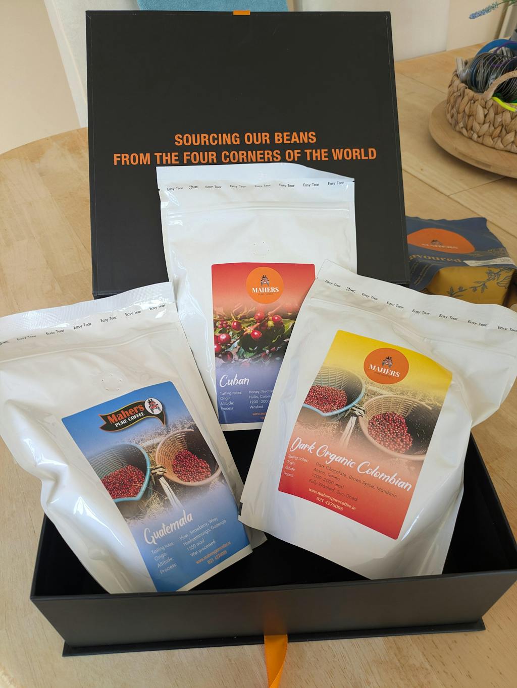 - Accompanied in a lovely Mahers Pure Coffee gift box